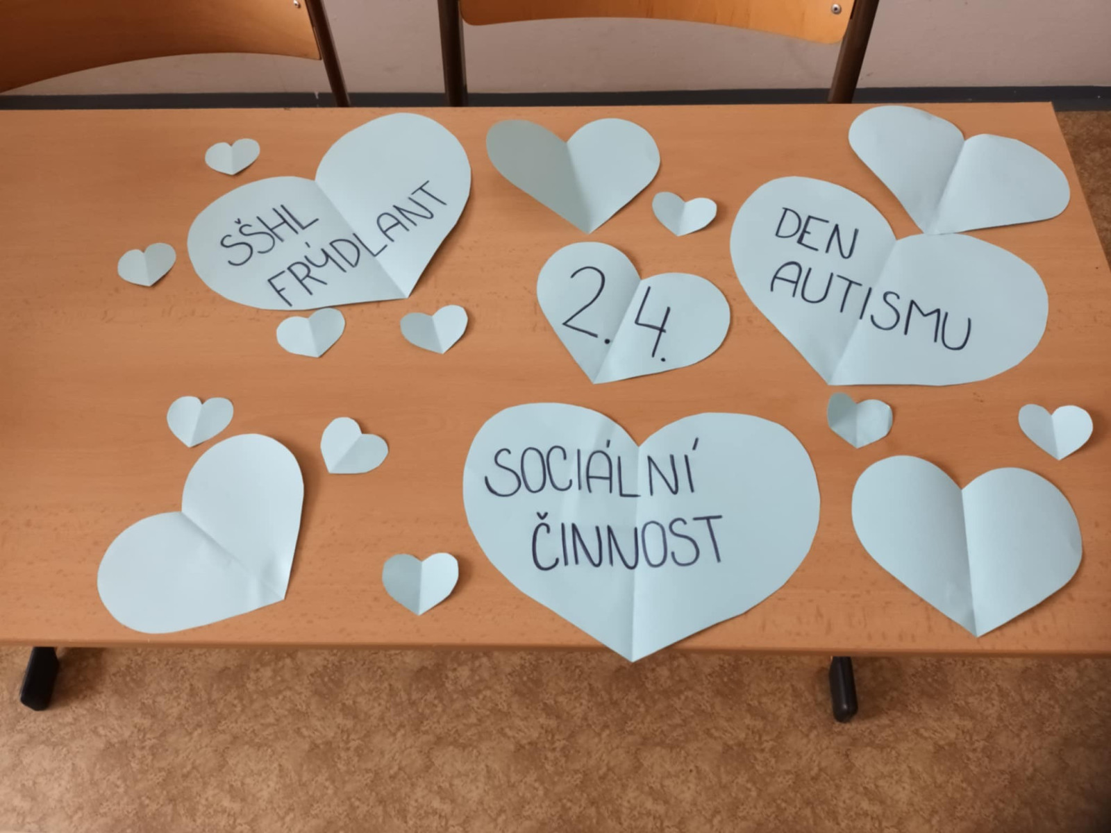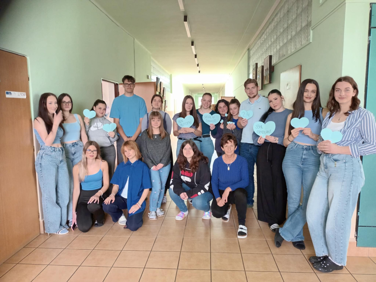 Žáci oboru Sociální činnost se k této iniciativě připojili a vyjádřili svou solidaritu prostřednictvím modrého oblečení a symbolických srdíček. Modrá barva je mezinárodně uznávaným symbolem autismu a představuje důvěru, komunikaci a porozumění.