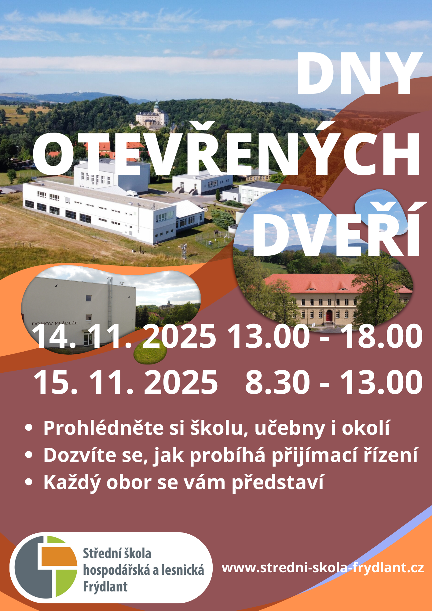 Hledáte střední školu, která odpovídá vašim zájmům a potřebám? Přemýšlíte o naší škole, ale chybí vám bližší informace? Přijďte se k nám podívat během dnů otevřených dveří a zjistěte, proč je právě naše škola tou pravou volbou pro vás.