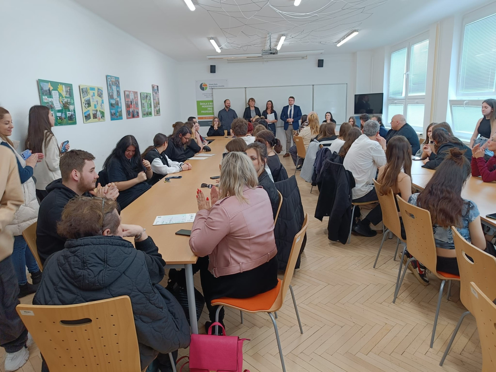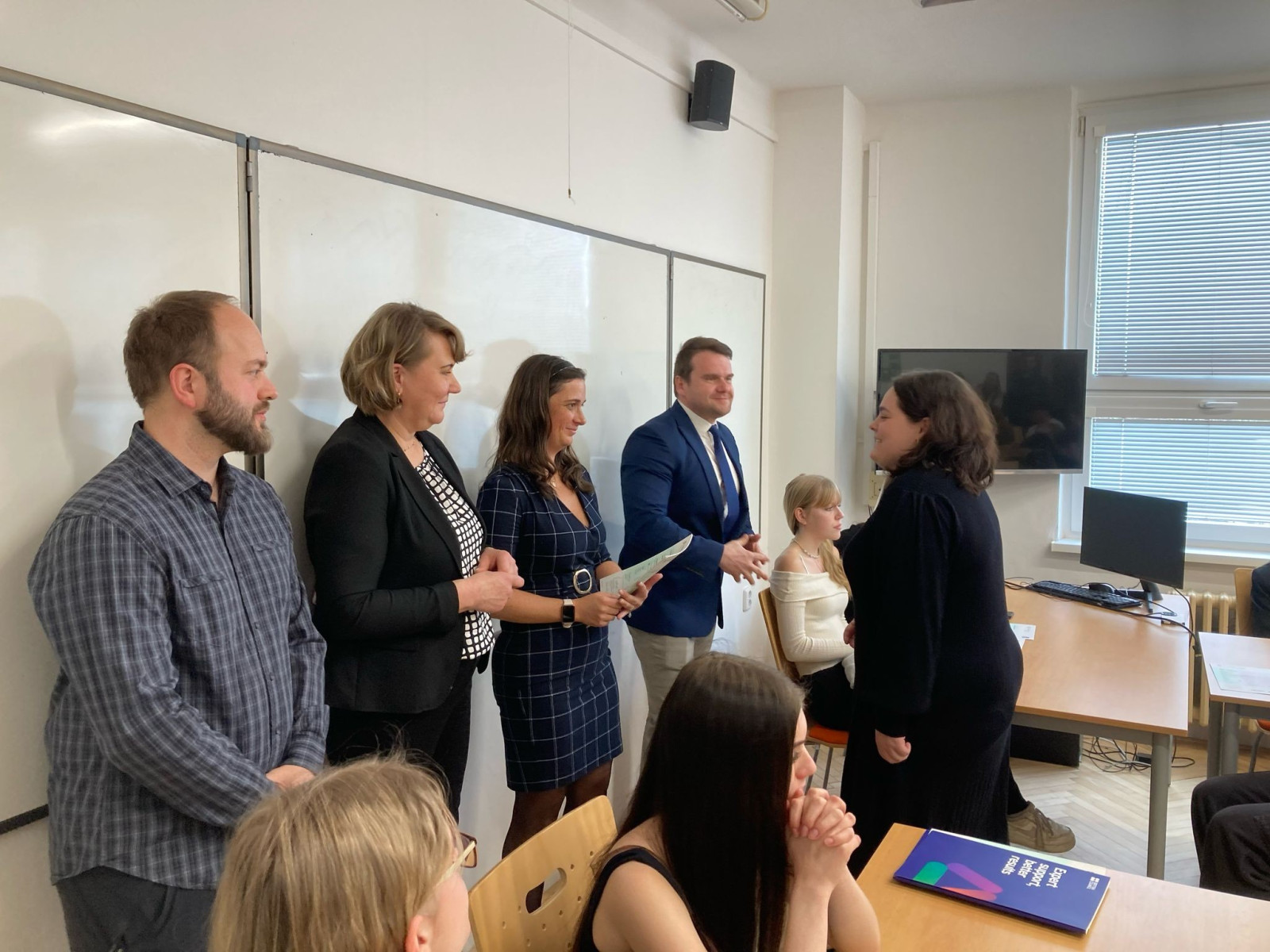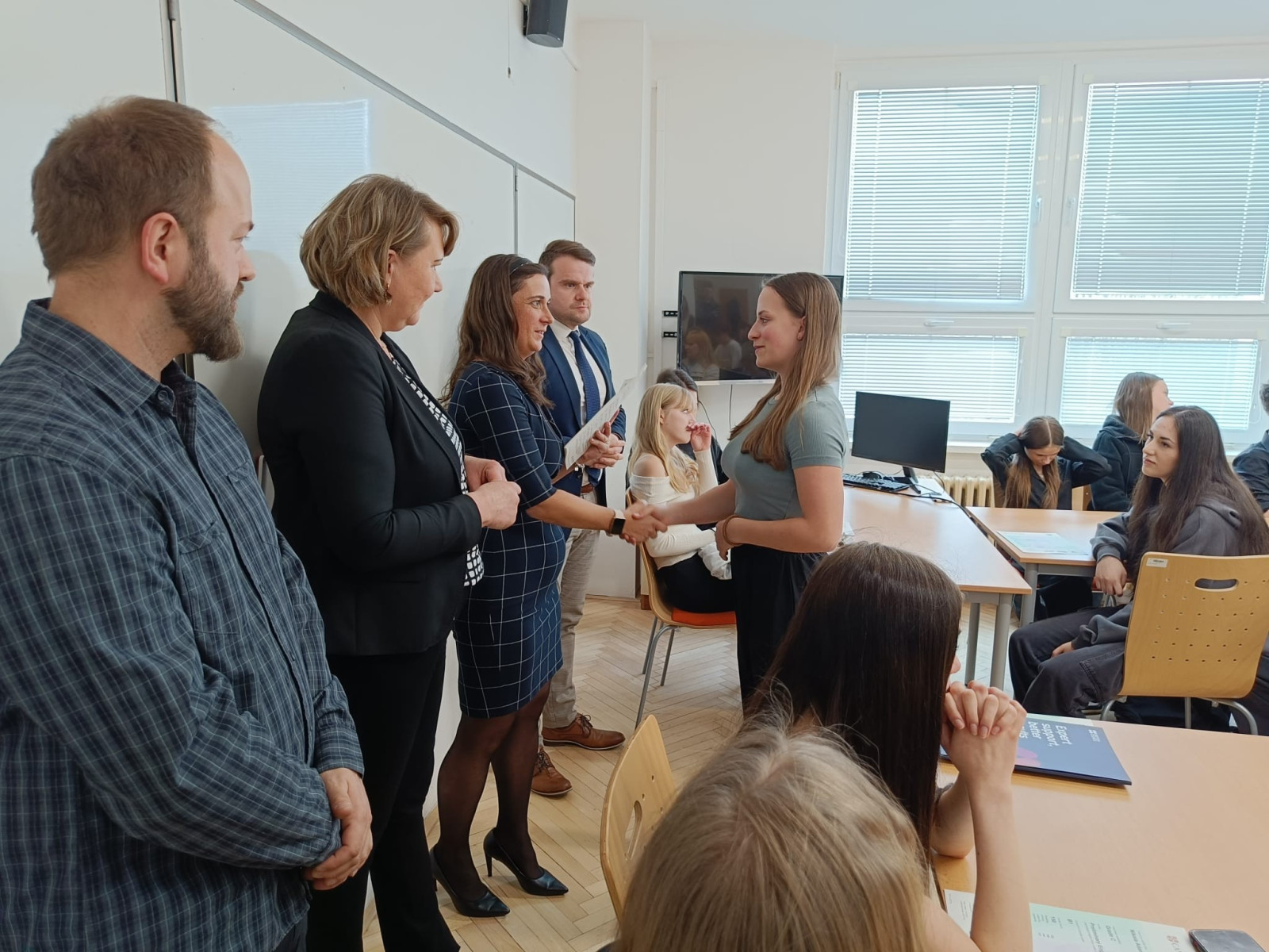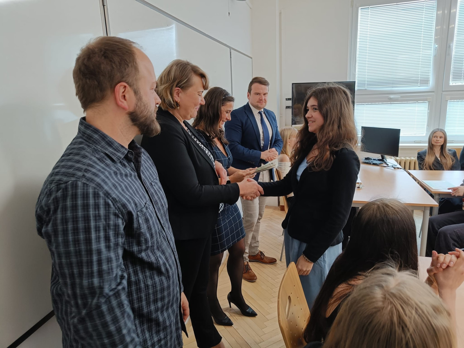 Ve středu 12. března proběhlo slavnostní předání certifikátů Cambridge, které úspěšně získalo 54 žáků naší školy. Ti o pololetních prázdninách absolvovali mezinárodní jazykovou zkoušku z anglického jazyka. Díky spolupráci s British Council, prestižní britskou organizací podporující vzdělávání a kulturu, se mohli žáci do tohoto programu zapojit přímo na naší škole. Celkem 49 žáků dosáhlo úrovně B1, přičemž 27 z nich obdrželo výsledky hodnocení B2. Dalších 5 žáků získalo certifikát na úrovni A2. Slavnostního předávání se vedle žáků druhého, třetího a čtvrtého ročníku studijních oborů Obchodní akademie, Sociální činnost, Agropodnikání, Veterinářství a Ekologie a životní prostředí zúčastnili i jejich rodiče. Všem úspěšným žákům srdečně gratulujeme. Velké poděkování za iniciativu a organizaci zkoušek patří Mgr. Marii Bursové, Mgr. Lucii Voženílkové, Mgr. Janu Vítkovi a Bc. Ondřeji Fisenkovi, kteří zajišťují celý proces. Tento den byl nejen oslavou dosažených výsledků, ale také motivací pro další žáky, kteří se budou chtít do programu zapojit v příštím školním roce.