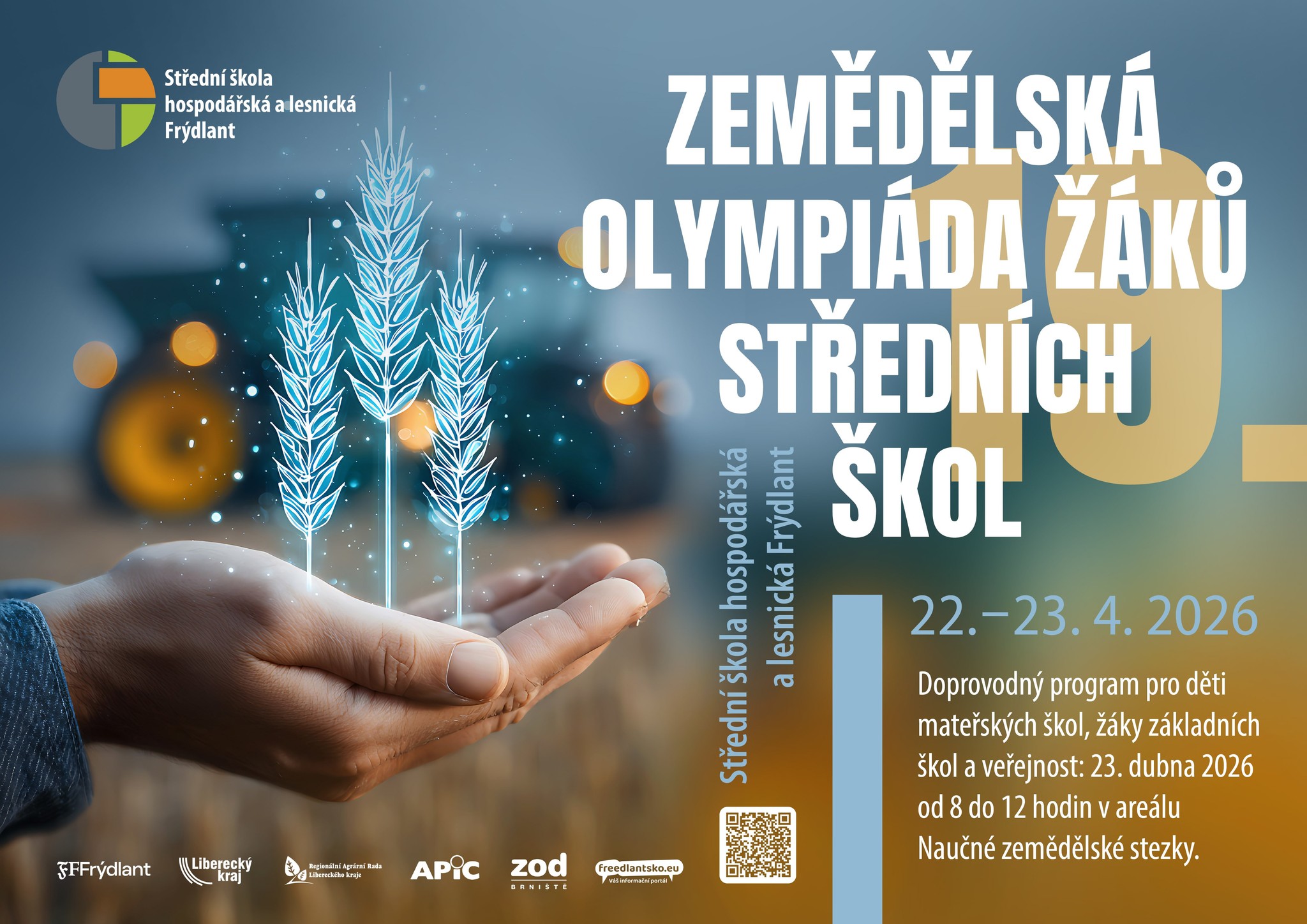 Střední škola hospodářská a lesnická Frýdlant srdečně zve na Zemědělskou olympiádu žáků středních škol, která se uskuteční ve dnech 22.–23. dubna 2026.